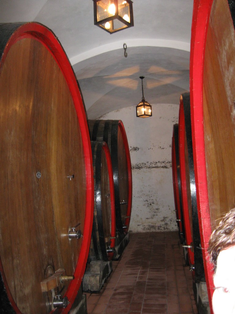 On our first trip to Italy in 2009, we wanted to go wine tasting in Montepulciano. We could not find a joinable tour for that destination, so we booked a private tour for the two of us. Our driver picked us up at our hotel in Florence at 8:00 am and drove us to the Tuscan countryside. Our first stop was a winery and vineyard set in the hills just outside the village of Montepulciano. This beautiful winery had been in the same family for generations. We were the only visitors that morning and were given a thorough and detailed tour of the grounds and the winemaking facilities. Our guide explained the entire production of the winemaking from harvesting the grapes to bottling the wine. We were amazed by the size of the oak barrels in the wine cellars. They were so large that they had to be assembled in place.
