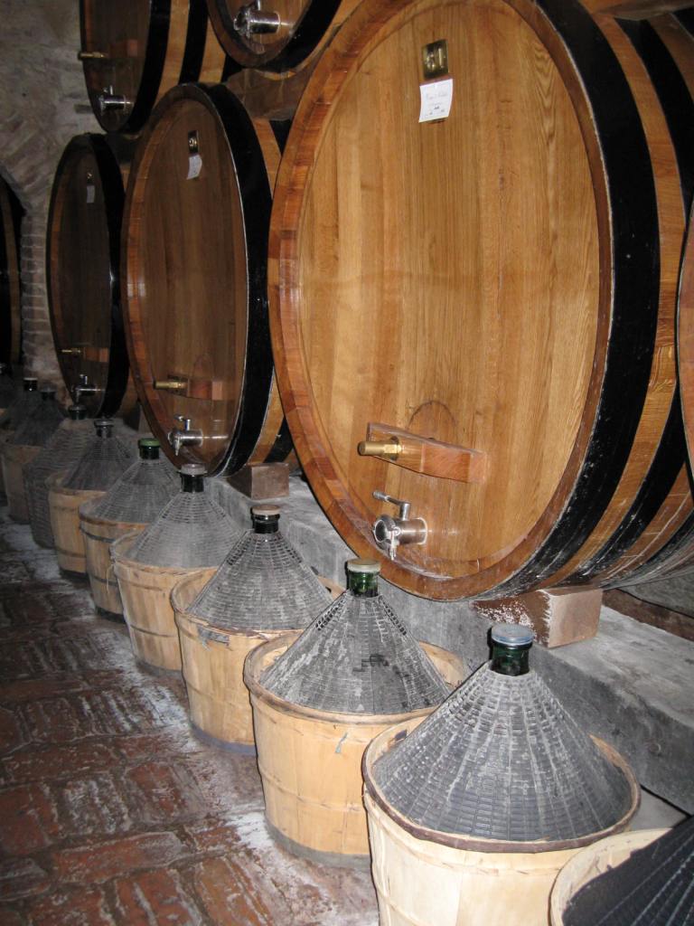 After lunch we went to the hilltop village of Montepulciano. Here we visited a winery, Contucci Cellars, that had been in business for over 1000 years. Touring the cellars of this winery was a walk back in time.