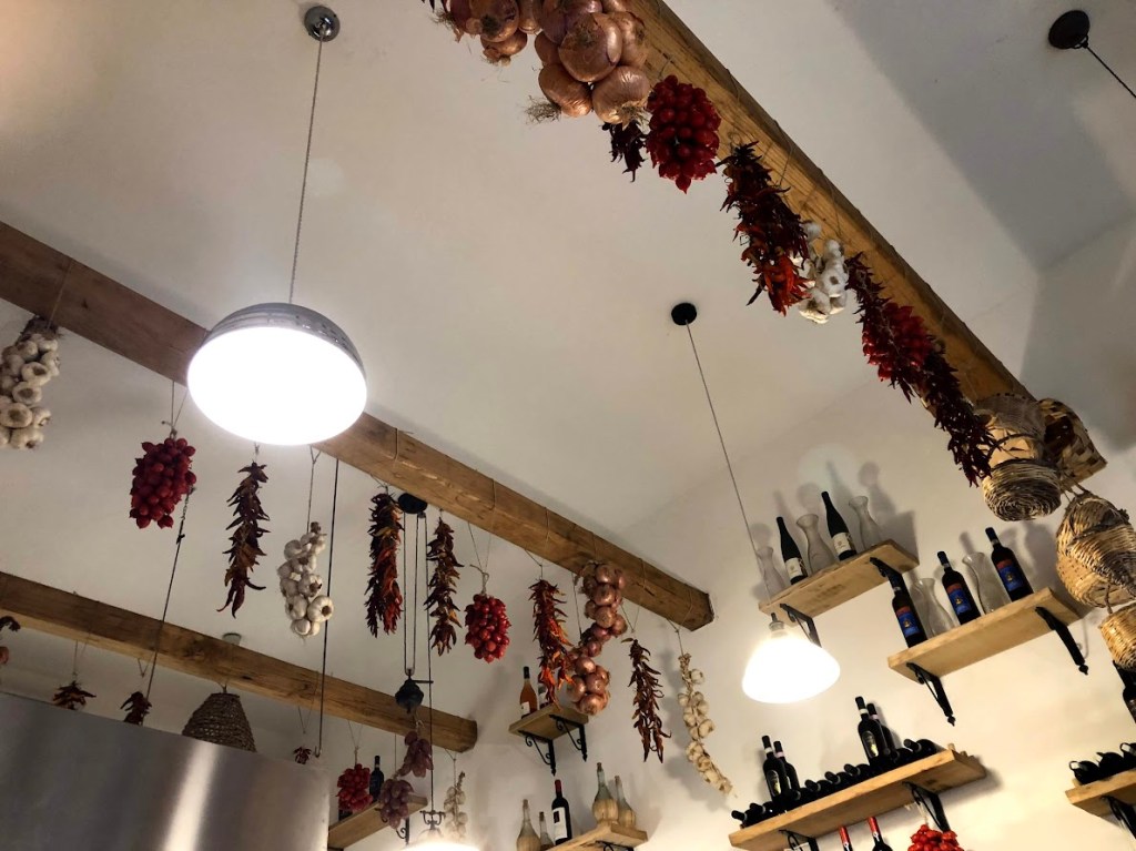 Our first experience with a cooking class in Italy was a few years ago when we visited Sorrento. I had not booked far enough ahead and had trouble finding a cooking class that would work for our itinerary. Luckily, I found a class scheduled for our last night in Sorrento at the Quanto Basto cooking school. The school is located in the central area of Sorrento- very easy walk from our hotel. Inside there is a large kitchen that opens up to a dining area with a long dining table and chairs. The ceiling is decorated with hanging bunches of tomatoes, peppers, and garlic. There were 10 of us in the cooking class and that was very manageable. Antonio (Tony) was our instructor along with his assistants.