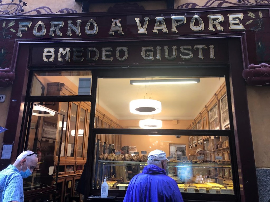 We had such a fun experience at our cooking class that when we returned to Italy this year, we decided to try another one. This time we were in Lucca where we scheduled a class with Extra Virgin Cooking School. We met our host and instructor, Guiseppe, at 9:00 am in a small piazza in central Lucca. He led us to several shops where he purchased ingredients for the lunch that we would prepare that day. We stopped at one shop to buy focaccia, a small market for vegetables, and a wine shop.