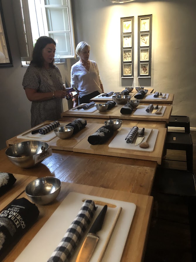 We started our class with glasses of prosecco as we all introduced ourselves. Guiseppe is very knowledgeable about different wines from the region and introduced us to several different ones throughout the class. We sipped on Vermentino while we worked in the kitchen and sampled some excellent Chianti with our meal.
