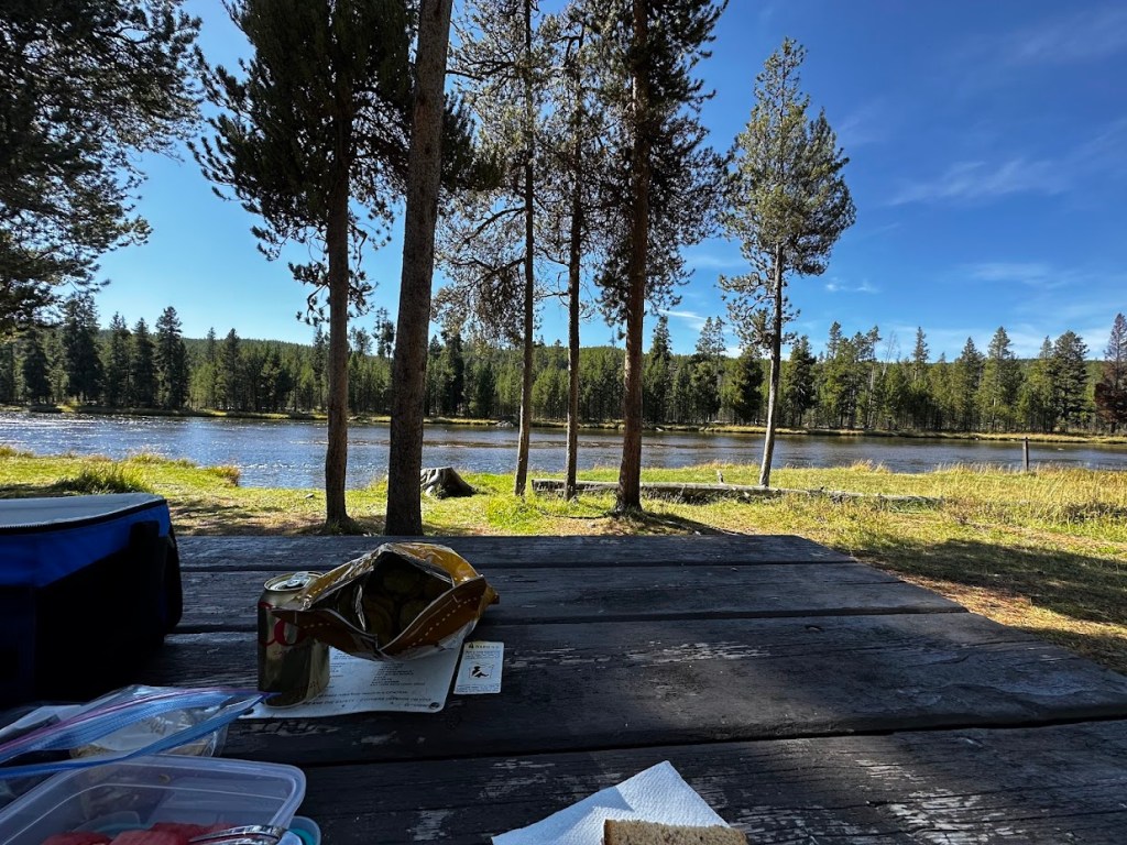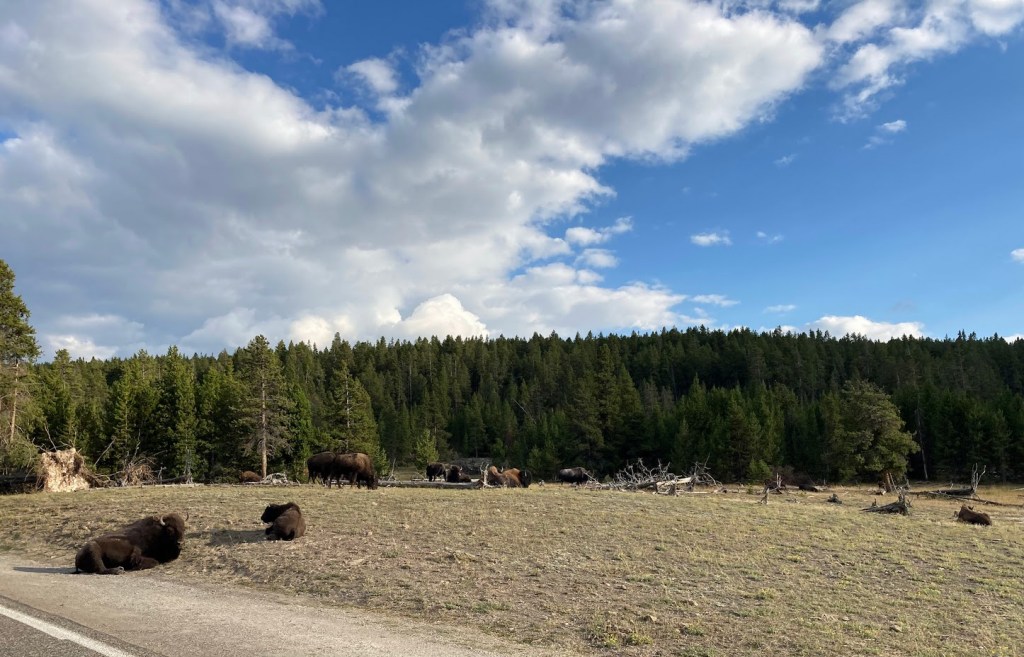 On your way back to Madison Junction, there are two short scenic drives that are worth a detour. The Firehole Lake drive takes you past more geysers and hot springs. This is also a place where we have seen bison herds grazing by the road. Firehole Canyon drive is a short scenic drive with great views of Firehole Falls. Take some time to stop at one of the picnic areas along the Firehole River for a picnic lunch.