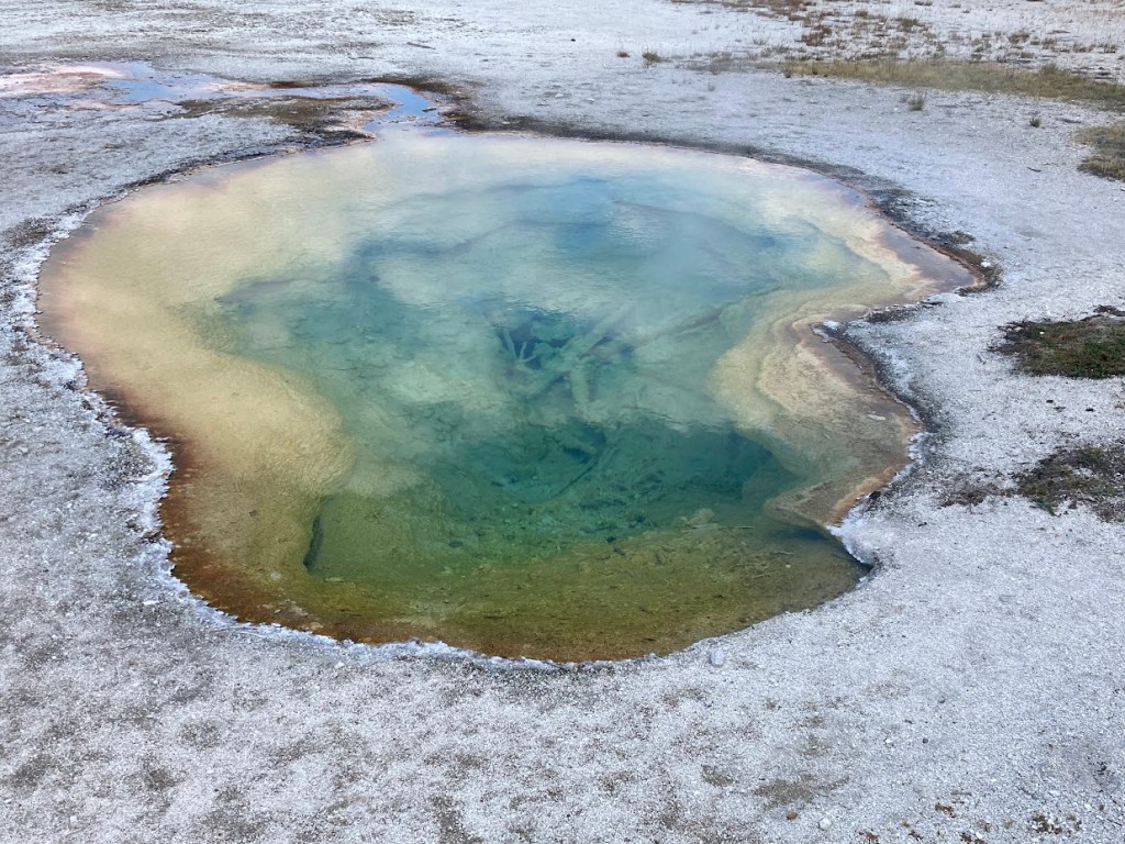Once you reach the Madison Junction you can turn north toward Mammoth Hot Springs or south toward Old Faithful. The area between Madison Junction and Old Faithful will take most of a day to explore. This is probably the most crowded area of the park, so an early start is best for this section. If seeing the Grand Prismatic Spring and the midway geyser basin is on your list, you need to get there very early in the morning. By 8:00 there is not a parking place within a mile’s walk. In the past two visits to Yellowstone, we still have not been able to get close enough to view this site. It’s OK though as there are plenty of other beautiful springs and geysers to see on this drive. The lower geyser basin has a .5-mile boardwalk that will take you past the fountain paint pots and some smaller geysers. After finishing that walk you can drive to the Biscuit Basin. The pools here are smaller but incredibly beautiful. Another .5-mile boardwalk will take you past several pools and small springs and geysers.
