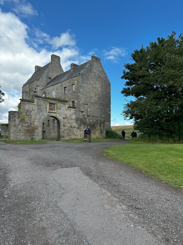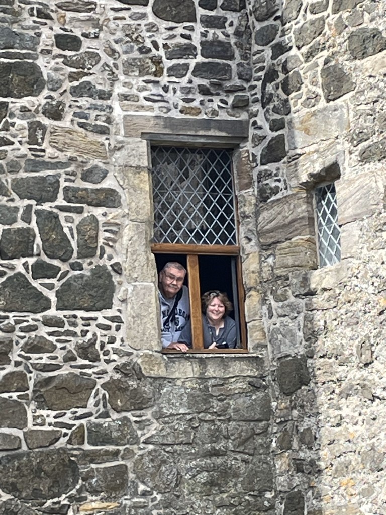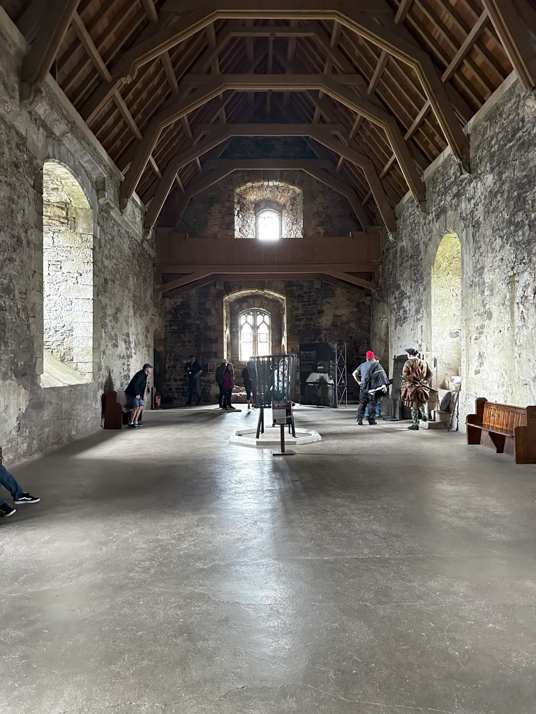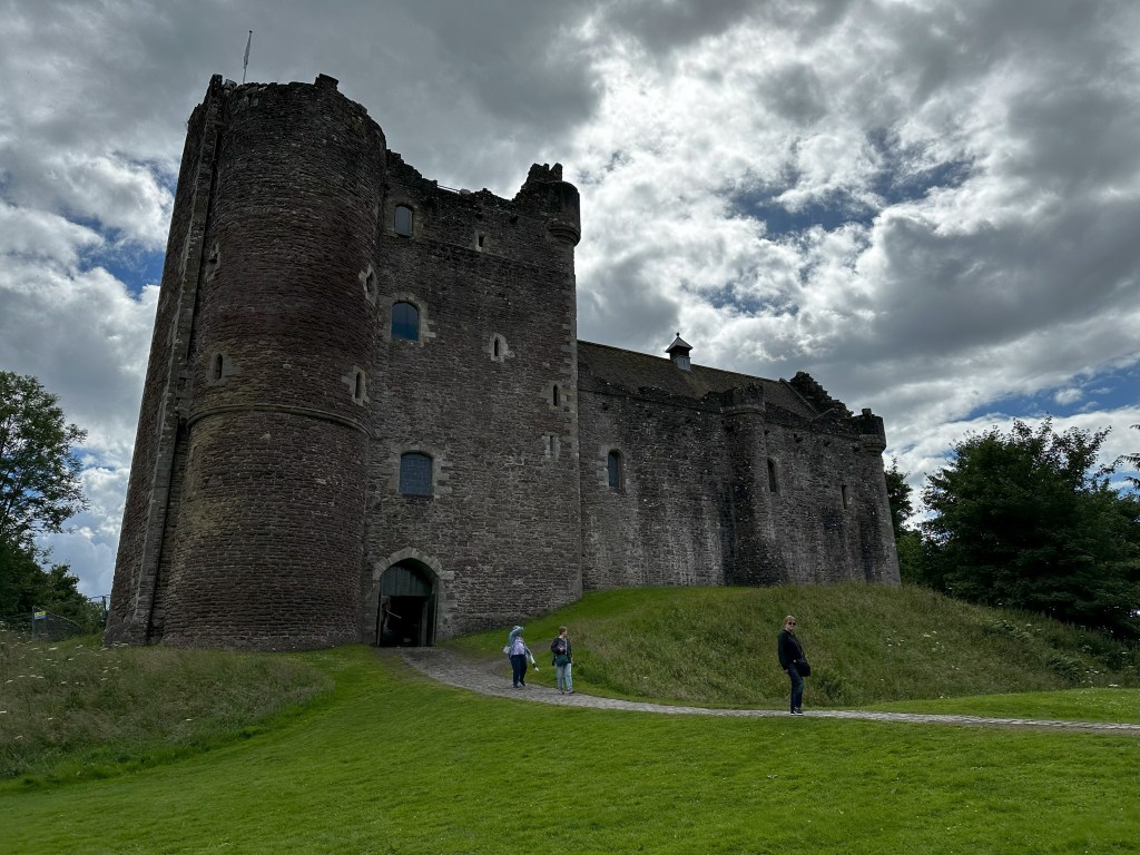 Doune Castle was the last castle on this tour. Doune Castle is a popular tourist site and has appeared in many films and TV series. It is an imposing site as you approach. Several rooms in this castle have been outfitted so that you can imagine what life was like here. Audio guides provide narration as you explore the castle and grounds. We were able to tour the courtyard, the kitchens, the great hall and the Baron’s Hall. These were all on the second floor and accessed by a set of stairs in the courtyard. We did not explore the rooms on the upper floors as that was just too many stairs for us. Our friend did visit the bedchamber on the upper floor and thought it interesting.
