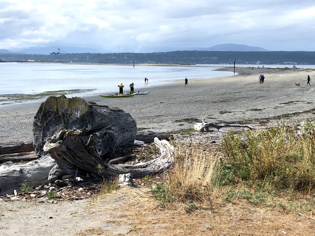 Fort Worden is another great place to explore. Fort Worden is located just outside the town of Port Townsend, so it has easier access to restaurants and shopping. Fort Worden also has two campgrounds, the forest loop and the beach loop. The forest loop has easier access to the trails and the beach loop has easier access to the water. Fort Worden is a large park with many interesting features. The large grassy parade ground is surrounded by the historical officer’s quarters and soldier’s dormitories. You may recognize this area from the movie “An Officer and A Gentleman”. You can rent the Officer’s houses or dormitory rooms for lodging (although at this time the reservation of these lodgings is paused per a management change) There are a couple of museums and cafes here. There is an event and conference center located here and every summer there are music festivals in the old balloon hanger. A marine science center is located on the pier and kayak and paddle board rentals are available near the beach. The trails at Fort Worden are a bit more strenuous than Fort Flagler but still very walkable if you take your time. There is also an old gun battery near the beach that is easy to access. Marine traffic is also viewable from the beach