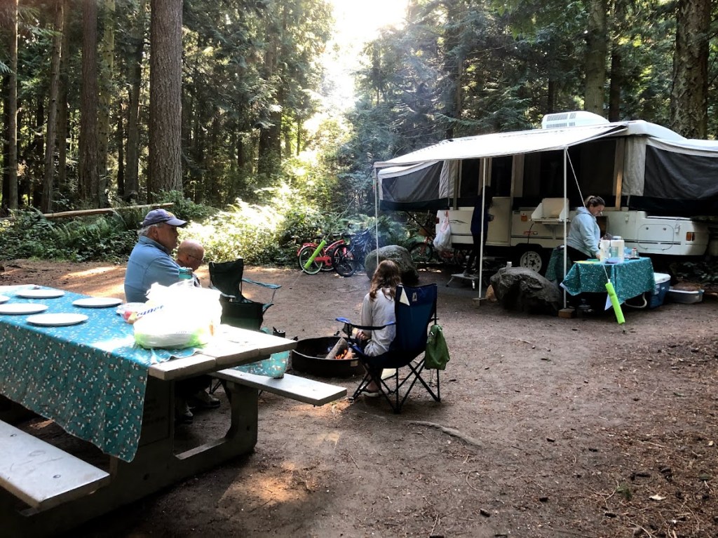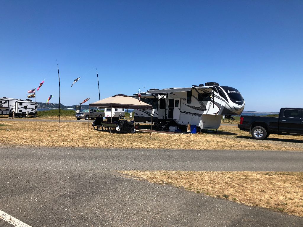 Fort Flagler is one of our favorite camping destinations and we try to camp there at least once a year. It is located on Marrowstone Island across the bay from the town of Port Townsend. There are two campgrounds, the upper loop and the lower loop. The upper loop has wooded campsites in the forest and is set up for tents and small trailers. The lower loop has several campsites of all sizes and is close to the beach.
