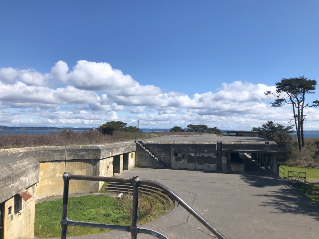 In the early 20th century three forts were strategically placed at the entrance to Admiralty Inlet from the Straits of Juan de Fuca. These three forts; Fort Casey, Fort Flagler, and Fort Worden were described as a “triangle of fire” to protect the waters of Puget Sound from any enemy ships. Today these three forts are Washington State parks. We have enjoyed several camping trips to Fort Flagler and Fort Worden.