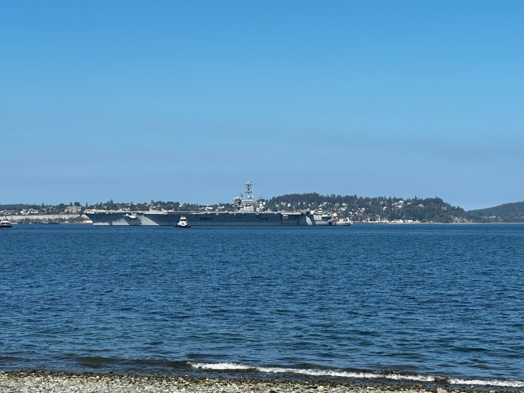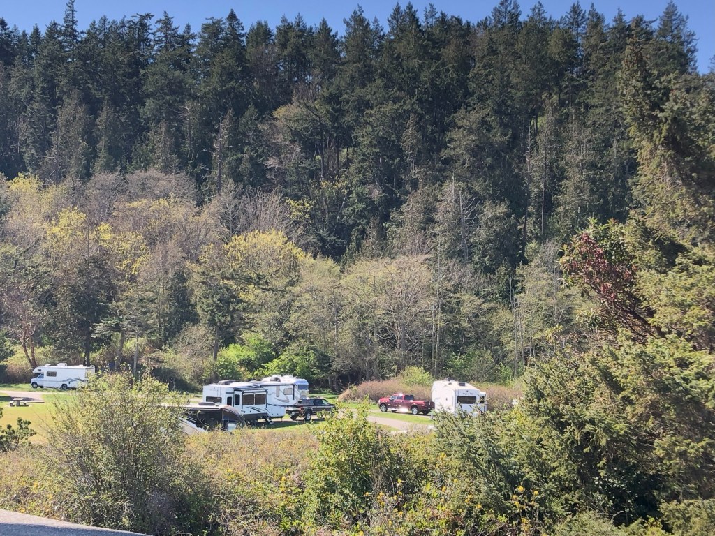 There are several paths to the beach from the lower campground. There is also a small snack bar that serves sandwiches and ice cream. Kayak rentals are available near the store. One of our favorite pastimes at Fort Flagler is watching marine traffic in Admiralty Inlet. Many cargo ships and cruise ships pass by on their way to and from the Pacific Ocean. Indian Island Naval Station is next to Fort Flagler, and it is not unusual to see Navy ships passing right in front of the campsites. We have watched Submarines, Destroyers, and Aircraft Carriers go by.
